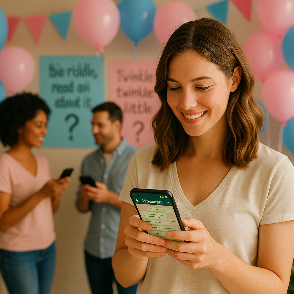 WhatsApp es una plataforma ideal para compartir acertijos divertidos que revelan el género del bebé. Una excelente forma de presentar el acertijo es crear una pequeña narrativa que atrape la atención de tus amigos, usando los mensajes de voz para dar un giro inesperado. Completa tu mensaje con stickers y emojis adecuados para enfatizar el tema. Por ejemplo, puedes usar corazones rosas o azules y emojis de bebés para crear anticipación. Involucra a tus amigos pidiéndoles que adivinen y compartan sus respuestas en el chat, aumentando así el suspense. Mantén el misterio hasta el final, revelando la respuesta con un mensaje sorprendente, o incluso con un video corto, para hacer el momento aún más especial. Para más ideas sobre tus acertijos, visita este blog.